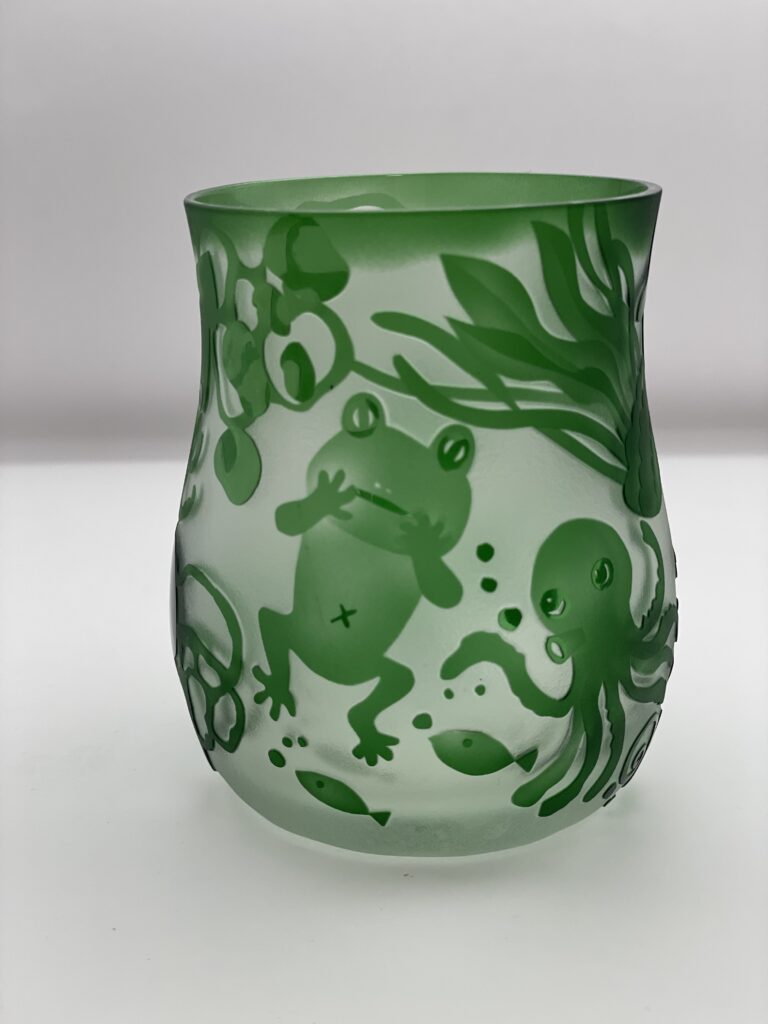 海に落ちたカエルさんグラスです。